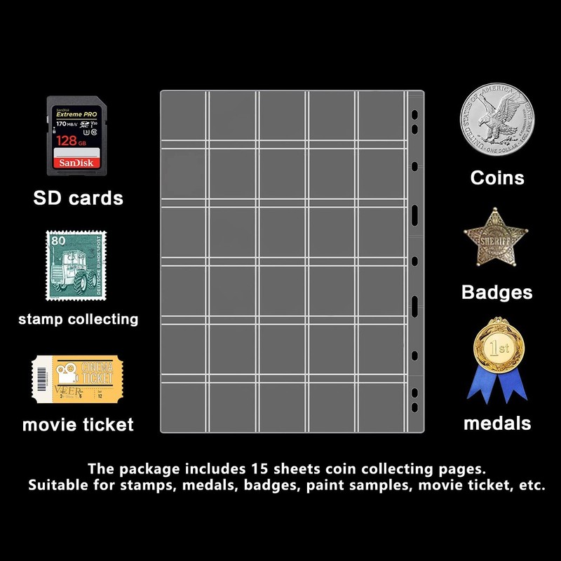 • Coin Collection Book Sleeve: 15 sheets with 30 pockets per page, total 450 pockets plastic coin holder binder sleeves .