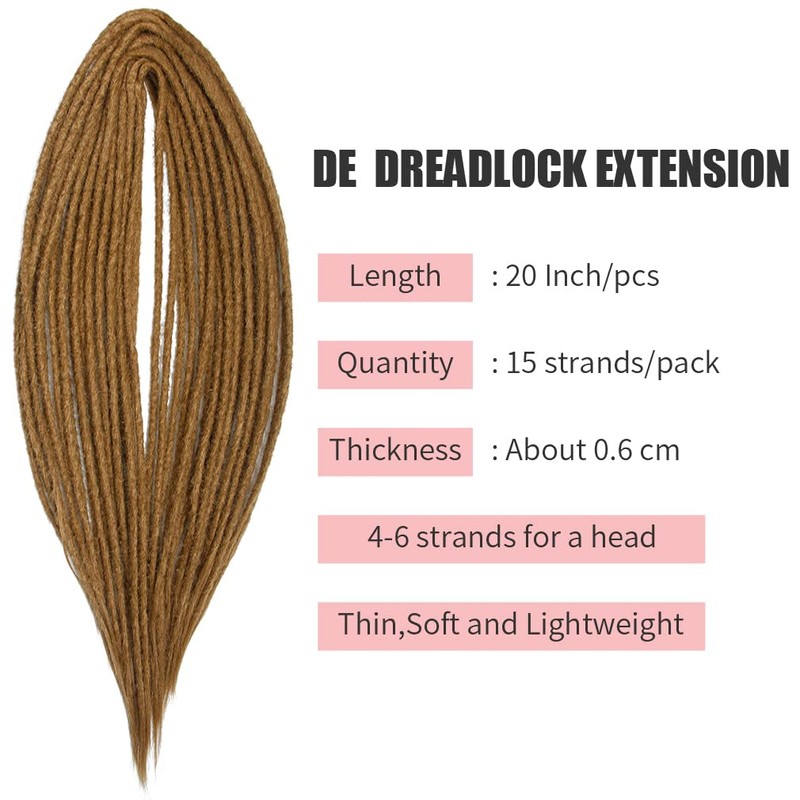 - Size details: 20 inch double ended dreadlocks extensions, 15 strands/pack, about 0.6 cm thick, 6.2 g/strand, thin and lightweight, about 4-6 packs for a full head.