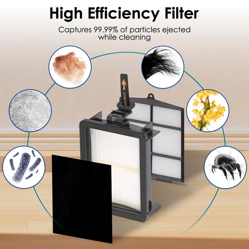 - 【HEPA Filter】4 filters included (1 pre-filter + 1 black HEPA filter + 2 yellow HEPA filters). The pre-filter performs the first filtering, followed by the black HEPA filter for the second filtering. The latest version of our AV2800ZEEUWH filters filters up to 99.9% dirt, pollen, small dust particles and other substances, ensuring a cleaner environment and air in your home. We recommend replacing the filter every 1-2 months to effectively protect dust from entering the engine and extend the life of the robot vacuum cleaner.