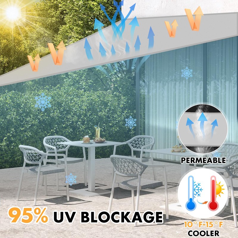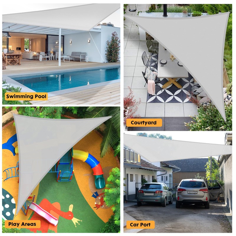 - 【VERSATILE OUTDOOR SOLUTION】When you are in the backyard, porch, pergola, garage, patio, garden, deck, pool, barbecue area, ark, sandbox, coffee bar or any outdoor facility, our triangular sunshade sails are the best versatile solution that Protects all generationos in your family from harmful UV!