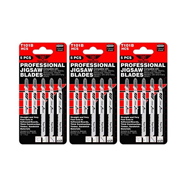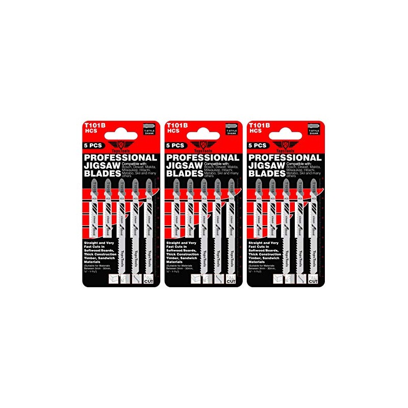 15 x TopsTools T101B Jigsaw Blades Compatible with Bosch, Dewalt, Makita, Milwaukee and many more