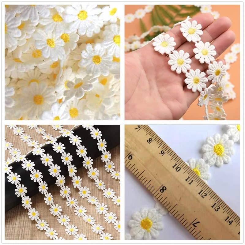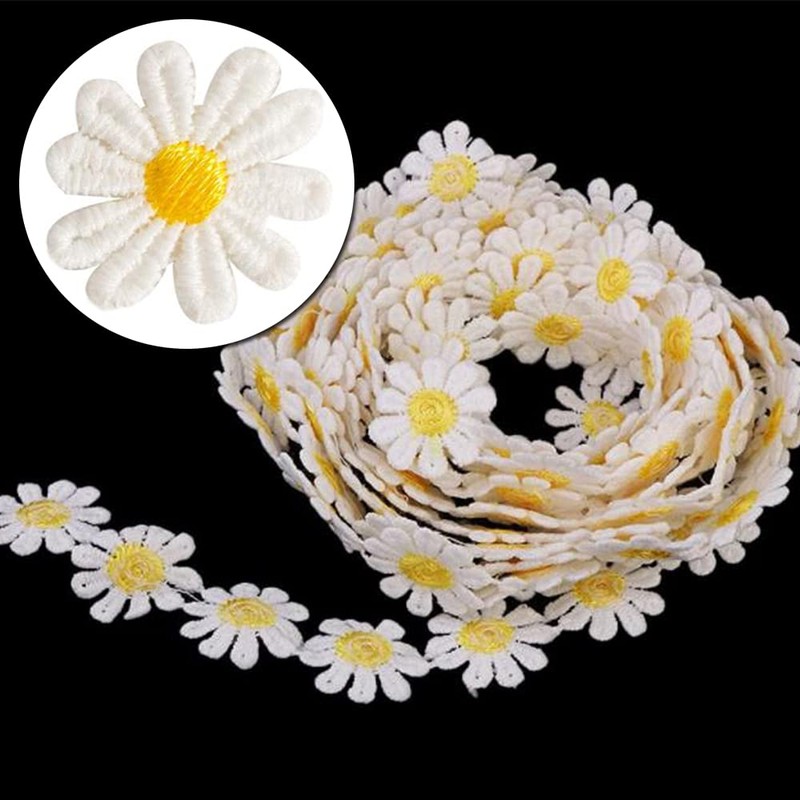 15 Yards Sun Flower Decorating Lace Daisy Embroidered Trim Ribbons Daisy Appliques for Sewing and Craft Projects