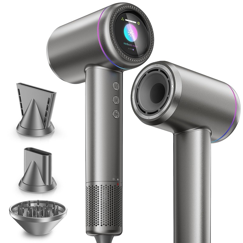 - 3 Magnetic Attachments: This high-speed hair dryer is equipped with 1* smoothing nozzle: makes hair smoother and softer. 1*styling nozzle: It has a more concentrated air outlet design to create precise styling. 1* Diffuser: Designed to enhance natural curls and texture. Easily personalize your styling and blow-drying experience based on your personal needs and hair style preferences