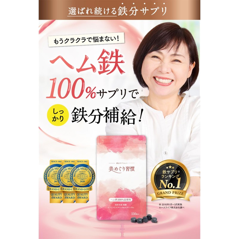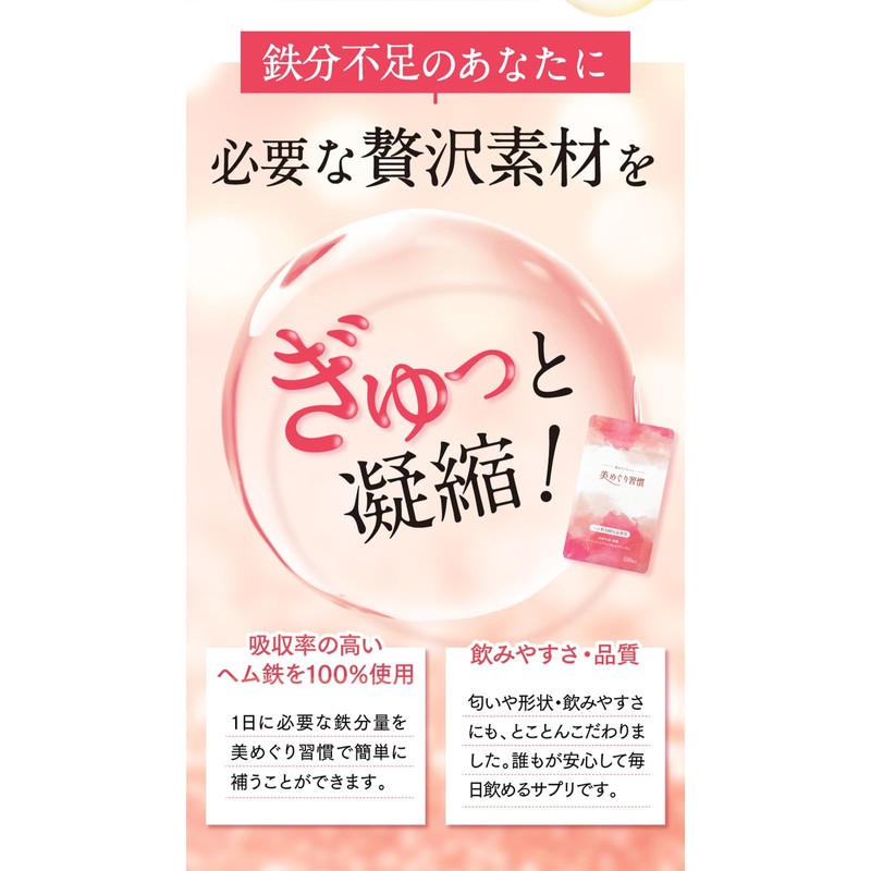 • ✅【高品質ヘム鉄100%配合】美めぐり習慣は豚肝臓分解エキスだけを使って「ヘム鉄100%」を実現しました!