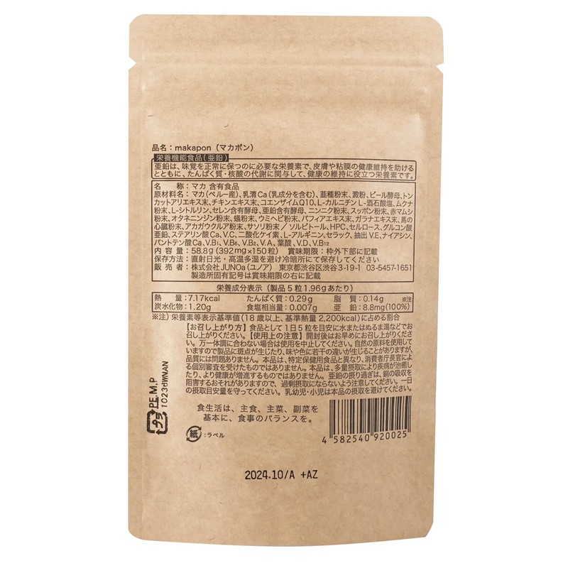 - マカポンには「亜鉛 」「マカ」「オタネニンジン」「トンカットアリ」「すっぽん」「アルギニン」「シトルリン」などの成分を配合しました。