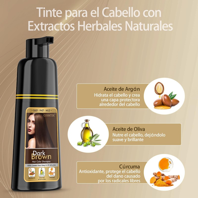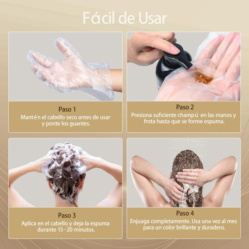 - Fácil de usar: Solo aplica el shampoo colorante castaño oscuro sobre el cabello seco como si fuera un shampoo normal. Déjalo actuar durante 15–20 minutos y luego enjuaga completamente.
