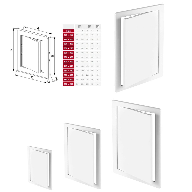 - 150 mm x 300 mm The Access ABS Plastic doors allow easy access to built-in inspection holes containing elements that require frequent or periodic inspection, such as water valves and water or gas meters.
