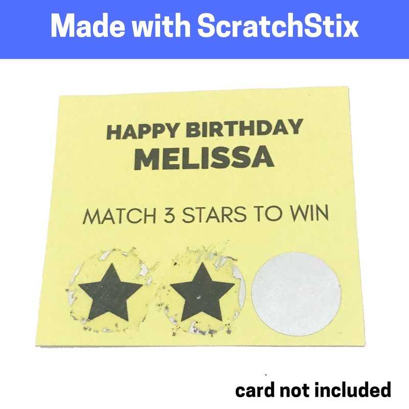 **How to Use** 1\. Print/Write your content on any sheet of paper/card. 2. Paste a Scratch Off sticker over your content, 3. Scratch the sticker off with a coin to reveal your content! There is a transparent film between the bottom layer and the "scratch-layer". You don't have to worry about accidentally scratching your content.