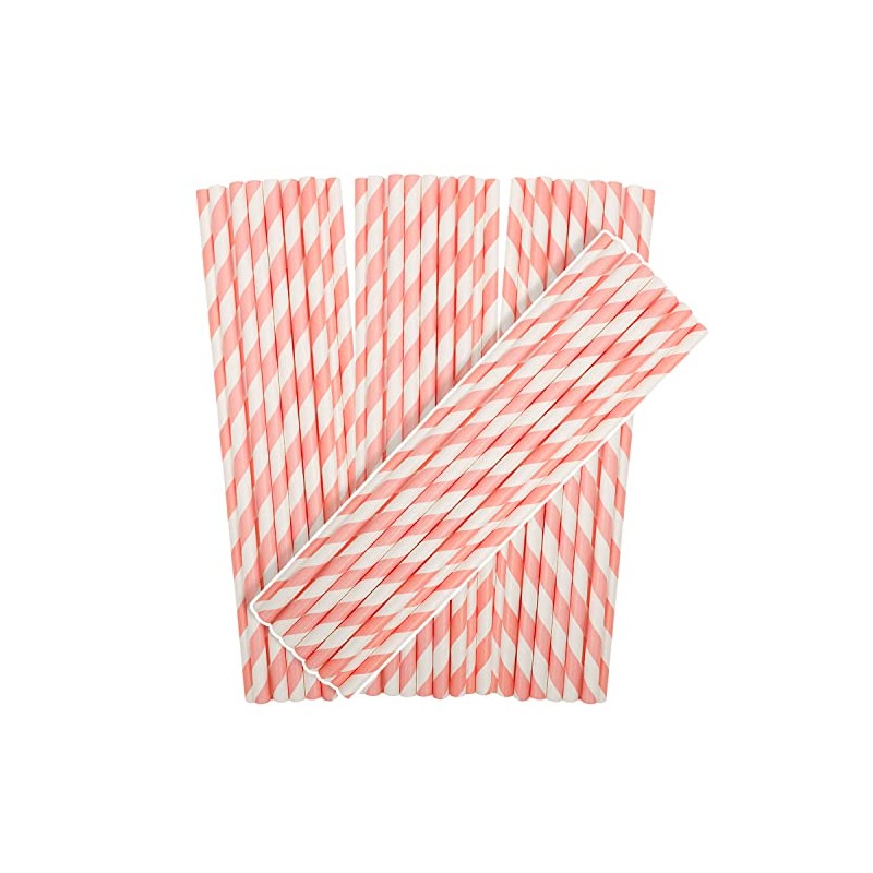 150 Packs Pink Paper Straws Drinking Disposable Stripe Straws Bulk qiqee