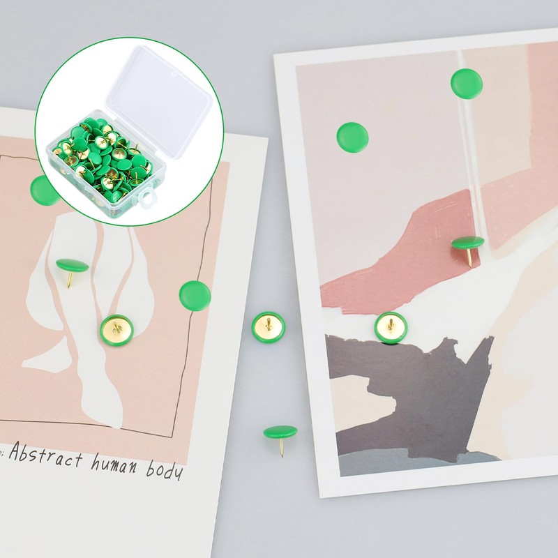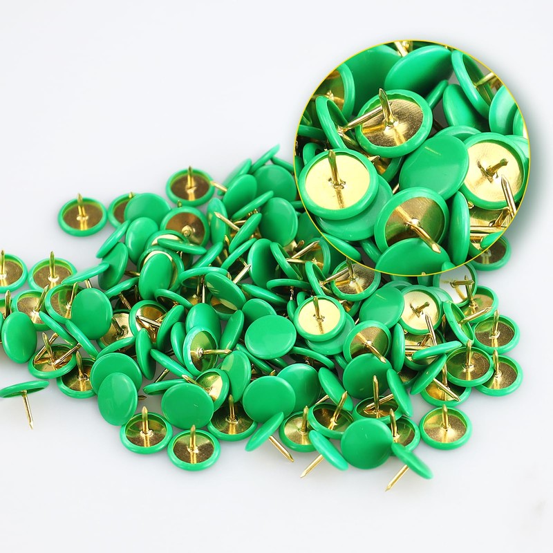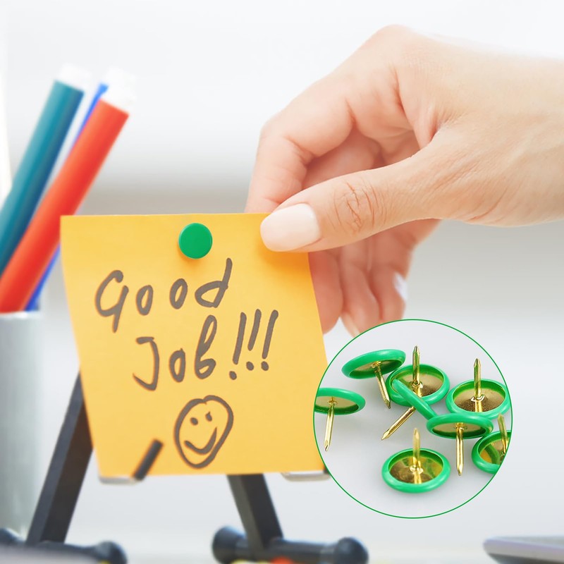 - SHARPNESS: These Green Push Pins are Designed with a Round Head and Flat Appearance, Sharp Enough to Easily Pierce Through Most Thin Materials. The Round Head Also Provides a Secure Hold, Preventing Papers or Items from Slipping Off.