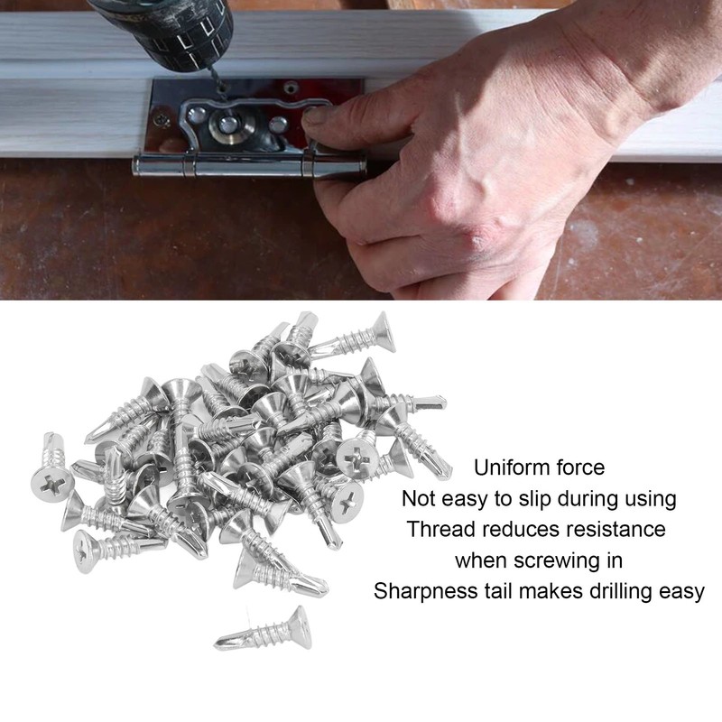 150 Pcs Self Drilling Screw 304 Stainless Steel 19mm Cross Countersunk Screw for Industry M4.2-18