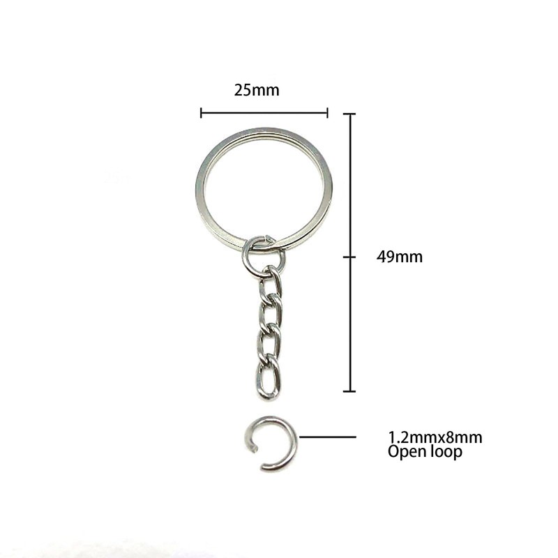 - Size: the split ring is approx. 25 mm in diameter, the chain is approx. 2.5 cm in length, and the open jump ring has a diameter of 0.4 cm.