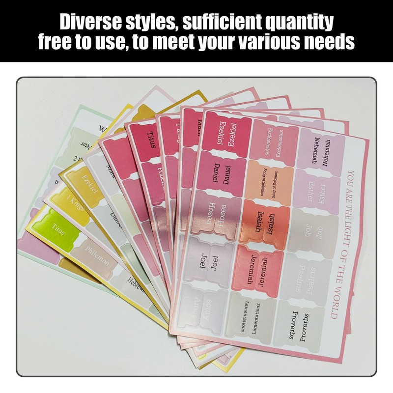 - 【Product Content】You Will Receive 150 Bible Index Stickers In Rich Colors, Suitable For Marking And Organizing Your Bible Reading. These Stickers Are Divided Into 10 Sheets, With Letters And Numbers On Each Sticker, Making It Easy For You To Quickly Find The Chapter And Verse You Need.