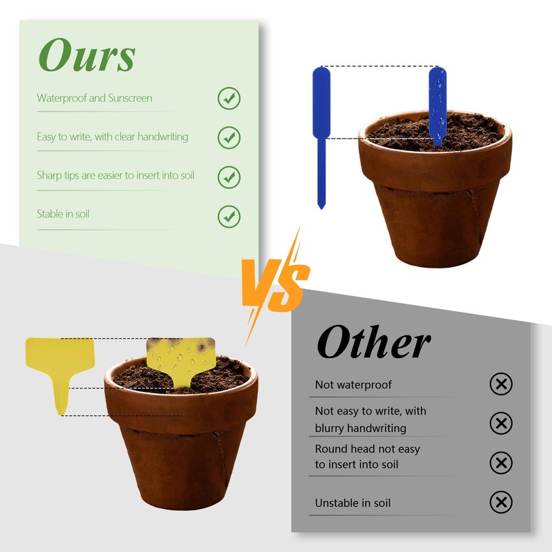- Durchdachtes Popsicle-Design: Die popsicle-förmige Form dieser pflanzschilder für draussen wetterfest sorgt für festen Halt im Boden, ohne Pflanzenwurzeln zu beschädigen. Im Gegensatz zu kopflastigen T-förmigen Schildern kippen sie nicht um. Der breite Kopf bietet viel Platz zum Schreiben und ist leicht zu erkennen – ideal als kräuterschilder oder für die Kennzeichnung von Gemüsesorten
