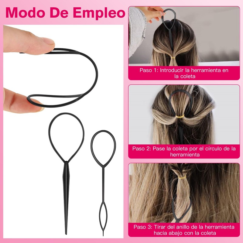 - 💇♀️ Lo que obtendrás: 500 mini gomas de colores. 500 mini gomas transparentes. 500 mini gomas negras. 2 cortapelos para coleta. 1 cepillo desenredante. 1 peine cola de rata. 1 cepillo para bordes de doble cara. 2 clips de pico de pato. 2 herramientas para peinar el cabello. 2 accesorios para el cabello al revés para mujer (1511 pzs total).