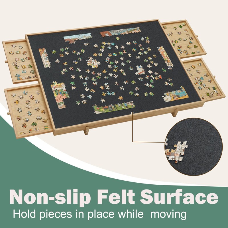 HALLYBEE 1500 Pieces Felt Puzzle Board with 4 Drawers, Cover, 2 in 1 Puzzle Table with Adjustable Tilting Stand, Portable Jigsaw Wood Table with Felt Top 34" W x 26" D