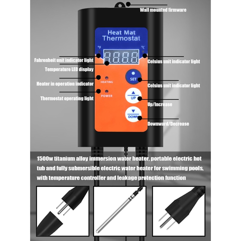 - 【Precise Temperature Control】Featuring a sensitive and corrosion - resistant temperature sensor, the heater can be fully immersed in liquids. The easy - to - operate temperature control panel allows for precise temperature adjustment within ±0.1°C. It automatically turns off when the set temperature is reached and restarts heating once the temperature drops below the set level, ensuring a stable and comfortable water temperature.