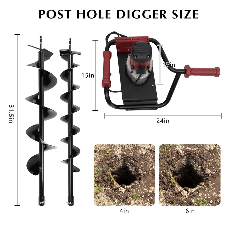 - Equipped w/4" & 6" Bits: This electric post hole digger is equipped with two different sizes of bits and 11.81" extension bars to meet your different digging needs, easy to replace.