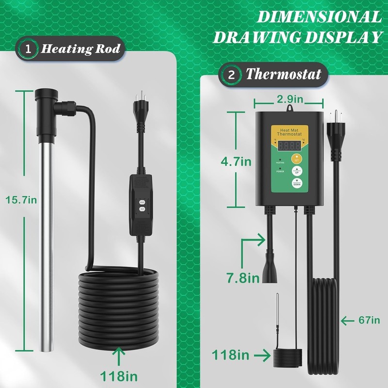 - 【AUTO TEMP CONTROL】- The titanium fully submersible water heater has highly sensitive temperature sensors and can be fully immersed in liquids. Achieve precise temperature control within the 0.1°C range you set. The temperature controller has LCD display that displays real-time temperature and is easy to operate. If the liquid cools, it can be restarted without continuous monitoring. The controller also has an effective overload protection function and avoid damage due to overload.