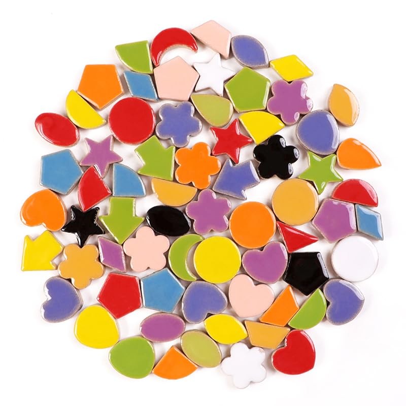 150g/5.3 Once 2cm Ceramic Mosaic Tiles for Craft Bulk, Moon Star Heart Round Square DIY Mosaics Making Pieces for Home Decoration, Art Crafts, DIY Projects