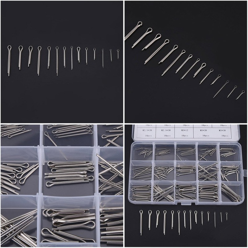 150Pcs 15 Kinds/Sizes 304 Stainless Steel Cotter Pin Assortment M1-M3 Heavy Duty Split-Cotter Pins Kit for Automotive, Mechanics