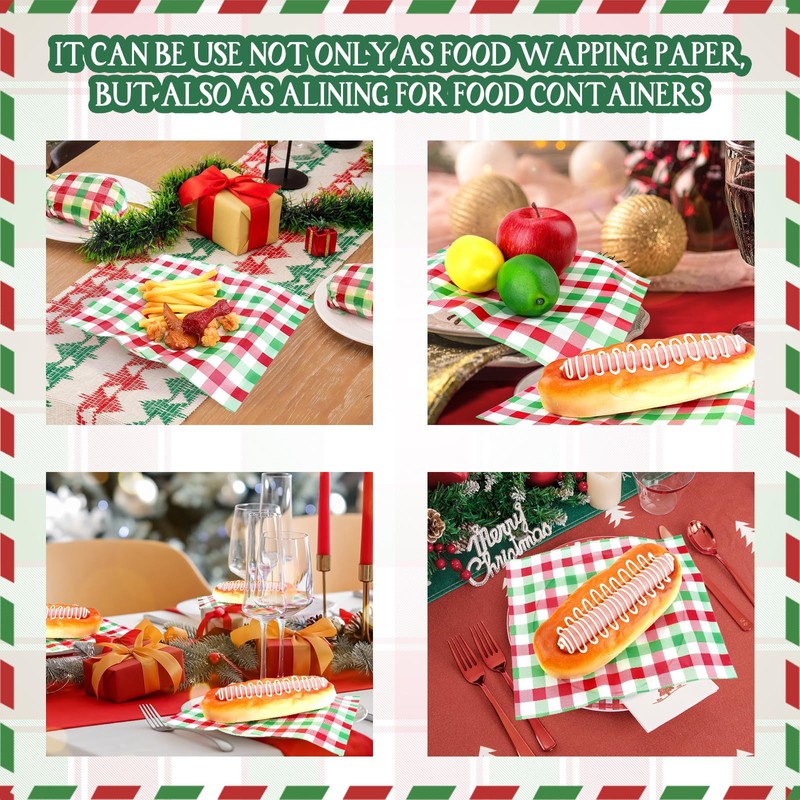 - 🍟🎄🍟【VARIOUS APPLICATIONS】: These Christmas red green plaids deli wax paper are able to use these deli paper to package food like deli, sandwiches, fast food and more. Besides, It will be also suitable to decorate food basket, wrap gift box and as picnic paper liners.