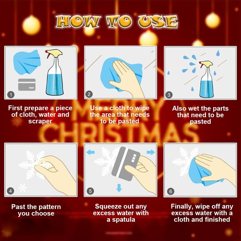 - 【Easy to Use】- Christmas clings for glass windows has no adhesive, you just need Wipe the window with a cloth to avoid dust and grease on its surface and Wet the window, then apply a sticker and fix it to the window to wipe off the remaining water. Of course, you can also easily remove the christmas stickers for windows and change its position at will.