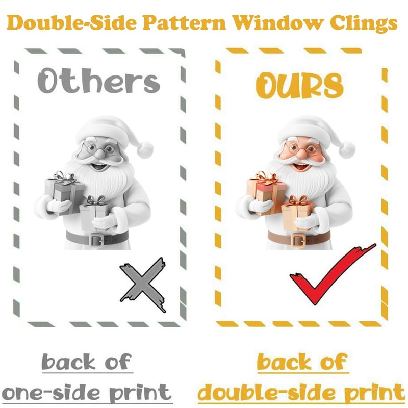 - 【Multiple Places to Use】- Our Christmas window decor can not only be stuck to the glass of room windows, but can also be widely used on objects with smooth surfaces, such as car side and rear windows, mirrors, refrigerators.