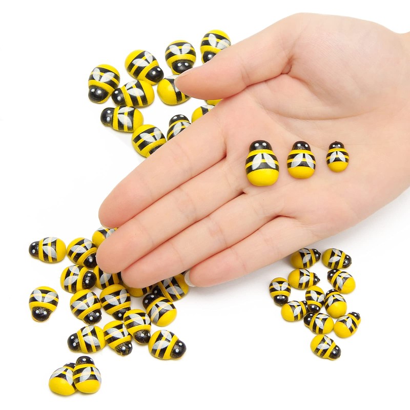 - 【Material】Self-adhesive tiny craft bees made of wood, painted on the surface, very lightweight and cute