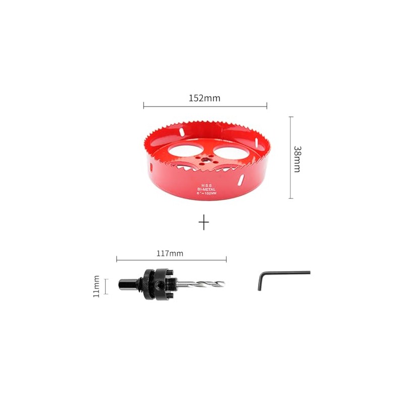 - [A2 heavy duty arbor] LAIWEI 152mm hole saw (6" 152mm hole cutter) with A2 heavy duty arbor. The fits most bimetal hole saws: 60 mm to 360 mm. Locking pin design: The pin locks the saw in place and prevents over-tightening and slipping.
