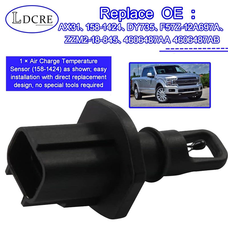 • Replace OE: The intake air temperature sensor replaces OEM part numbers AX31, 158-1424, DY735, F57Z-12A697A, ZZM2-18-845, 4606487AA, and 4606487AB, ensuring precise fit and OEM-level performance.