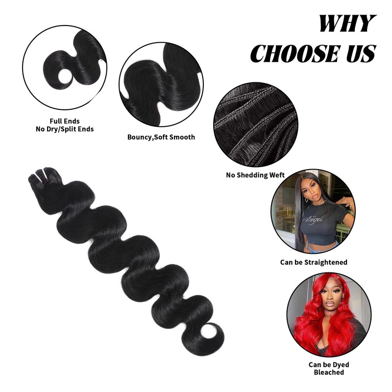 - Body Wave Bundles Human Hair Material:100% original Indian temple hair, unprocessed original human hair (cut from young girls) as hair quality. Clean, healthy, soft and silky.