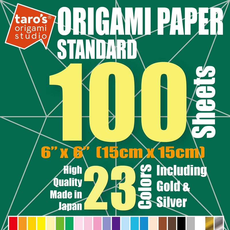 - 標準サイズ15cm、100枚、23色(片面カラー、片面ホワイト)、ゴールド、シルバー、日本製。Taro's Origami Studioは米国にある折り紙スタジオです。