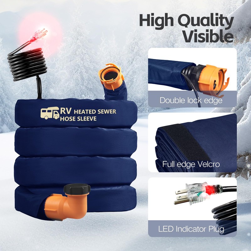 - 【Self-energy Heating System】: Intelligent self-regulating external thermostat for water pipes frozen to -45°F (-42.7C). The electric heating sleeve and the extra long electric heating wire have a good heating effect, and the built-in constant temperature heating source keeps the sewage flowing without overheating, so you can enjoy the RV camping life in winter;