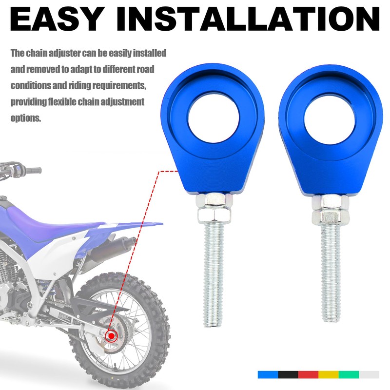 - 【Material】Chain axle adjuster is made of aluminum alloy, which can provide precise chain adjustment, avoid chain loosening and breaking or chain breakage caused by component wear, and improve the comfort of motorcycle enthusiasts during riding.