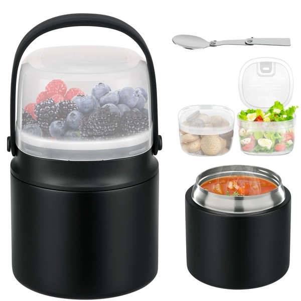 - Keep Food Hot & Fresh: Crafted from durable 18/8 stainless steel and featuring a vacuum-sealed design, this insulated food container keeps your meals hot for over 5 hours. Perfect for soup, overnight oats, pasta, yogurt, fruits, and more!