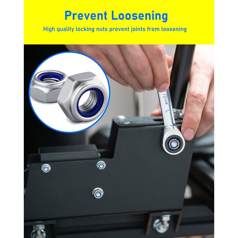 - EASY TO INSTALL: First, insert the nyloc hexagon nut into the mechanical screw hole where it is to be fixed, then screw the nut onto the bolt and tighten.