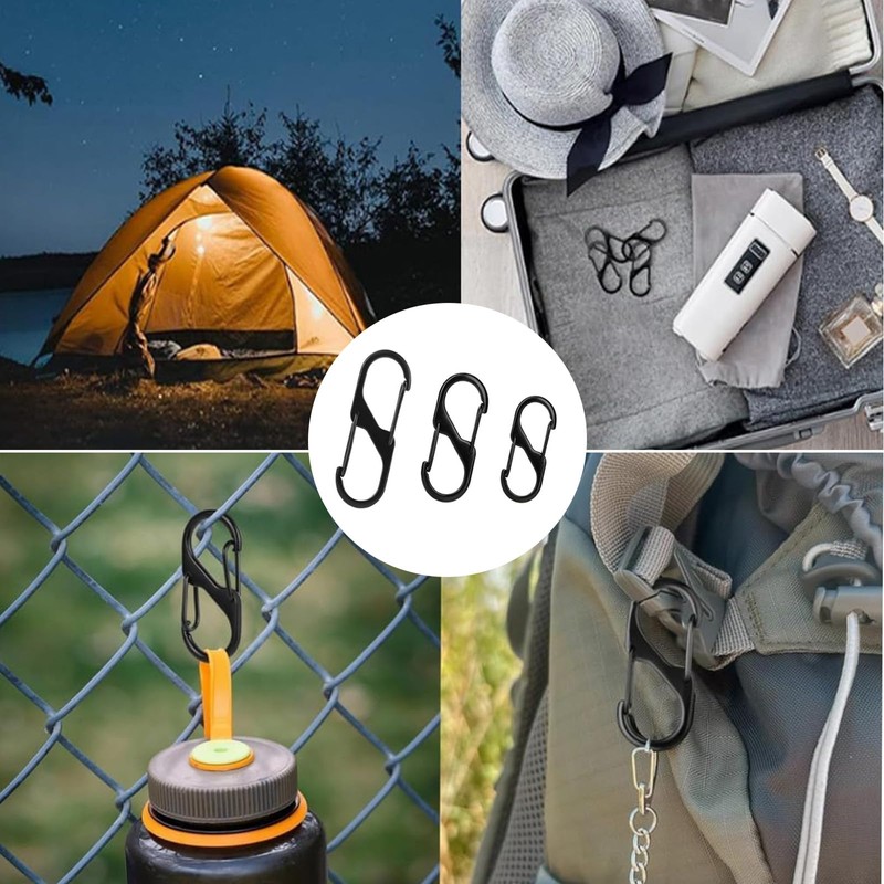 - 【S-Shaped Design】:This S shaped carabiner has two buckle openings, any opening of each carabiner can firmly buckle things, It is very safe to clip one end to clothes, belts, backpacks, and the other to hold keys, pendants, water bottles