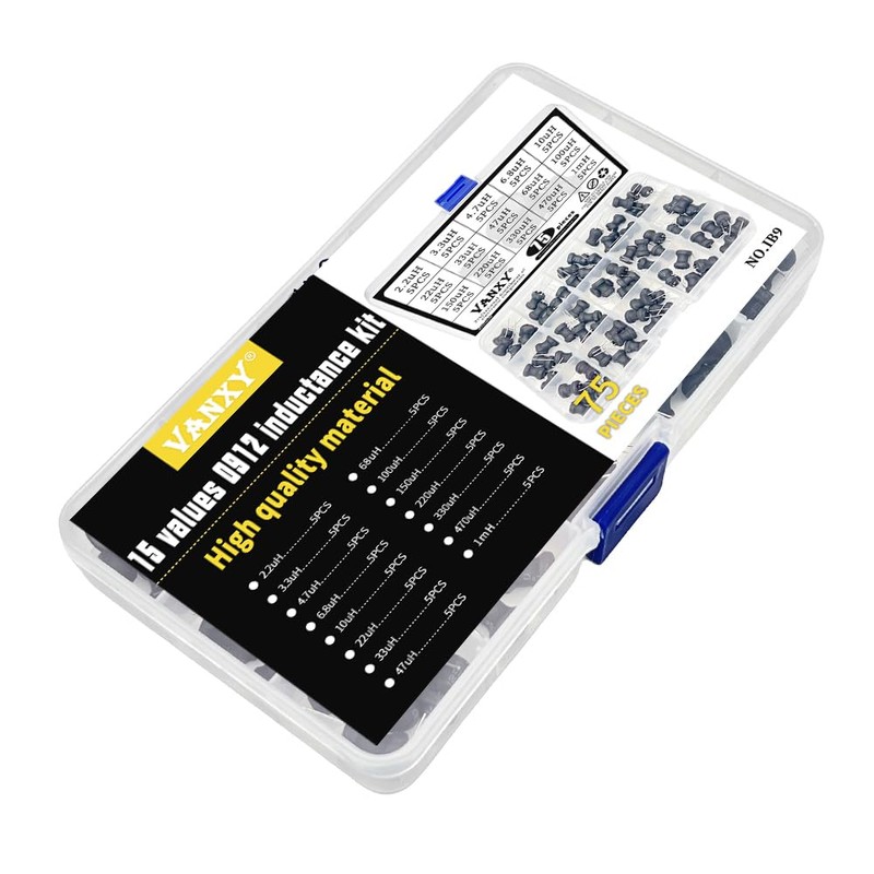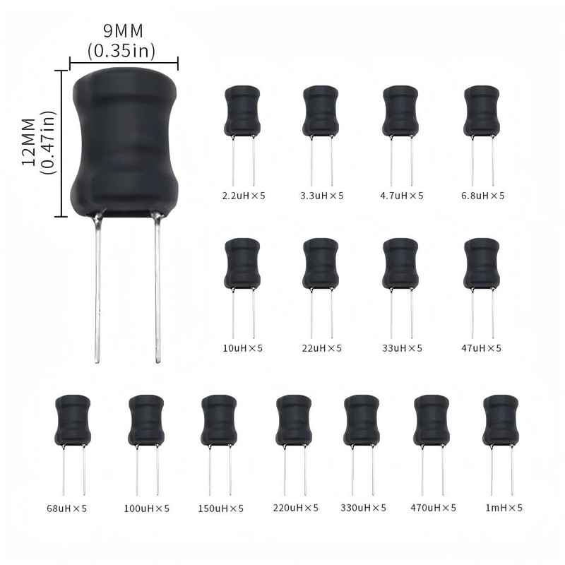 - 15 Values * 5Pcs Each: 75pcs I-shaped power inductors (2.2uH 3.3uH 4.7uH 6.8uH 10uH 22uH 33uH 47uH 68uH 100uH 150uH 220uH 330uH 470uH 1mH) for flexible power management in compact circuits.