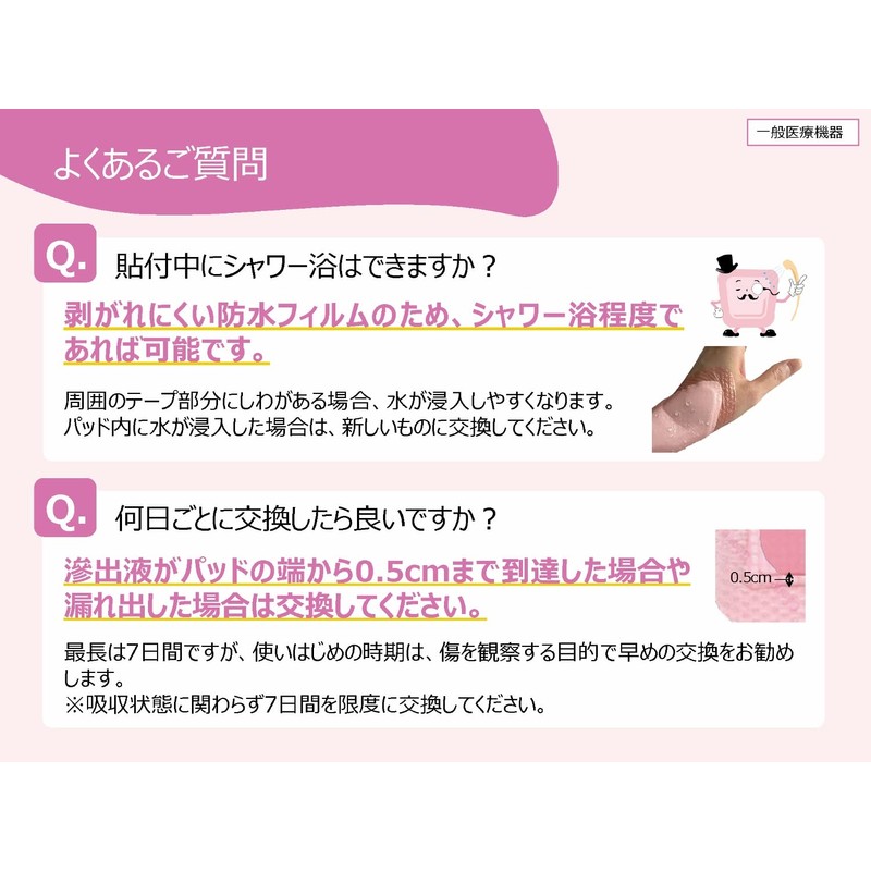 - シリコーンゲル粘着剤は、はがす時の痛みが少なく、粘着力が落ちにくいため貼り直しができます。すり傷、靴ずれや、傷ができそうな皮膚の保護にも。