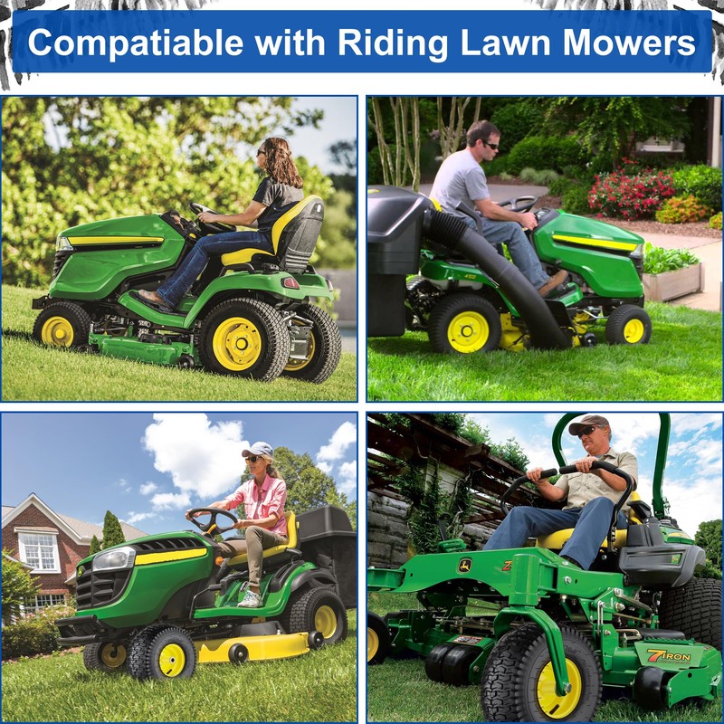 - 【Widely Applicable】15x6x6 riding lawn mower tires with wheels are compatible with 100 and 300 series lawn mowers with front size 15x6.00-6”, which are most popular replacements for many kind of lawn mower, riding lawn mower, lawn tractor, garden tractor and more.