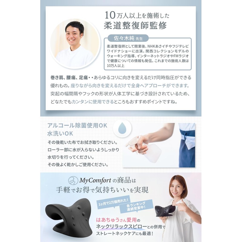 - ✅【柔道整復師が推奨する突起構造】海外で大ヒット中のツボ押し棒・指圧器を日本人向けに改良することに成功。人間工学を基に算出した突起の幅間隔やフックの形状だからどんな方でも簡単に使用することができます。筋膜リリース、トリガーポイントセラピー、深部組織のツボ押しに最適です。累計販売個数60万個を突破し、ネックリラックスピローなどツボ押しグッズを開発してきたMyComfort(マイコンフォート)だからこそ実現できる、ボディフックセラピーを是非、体感してみてください。
