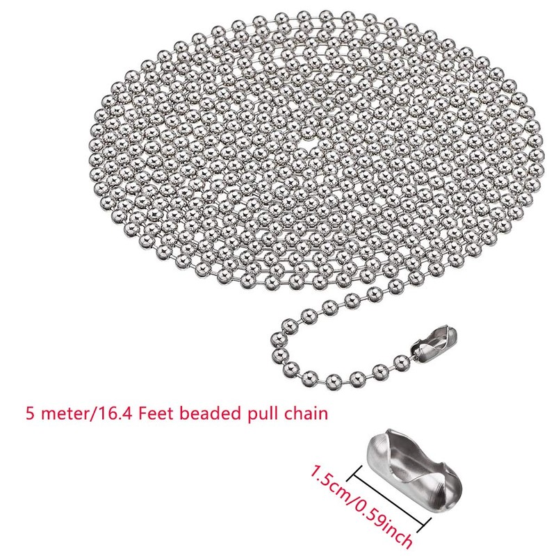 - Size: 5 meter/16.4 Feet beaded pull chain,diameter of ball chain keychain is 4.5mm/0.18".Ball bead chain connector is 4.5mm/0.18".Adjustable length,cut your desired length of pull chain to install on the places,which is convenient for your daily life