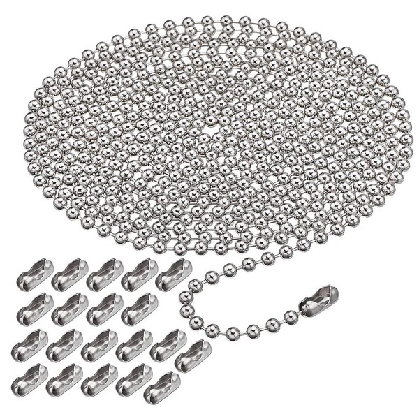 16.4 Feet Ball Bead Chain, Metal Roller Blind Beaded Pull Chain Extension with Connector Beaded Ball Roller Chain Keychain with 20 Matching Connectors (4.5 mm, Silver)