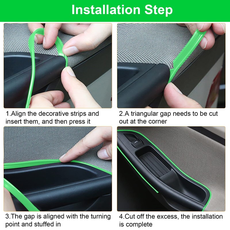 - đăPackage IncludeăA roll of 5M / 16.4 ft car trim strips, and installation tool, easy to install, simply insert it into the gap in the car. Note: When encountering the corner, first cut the triangle with scissors on the strip, so that the installation is more firm and not easy to protrude.
