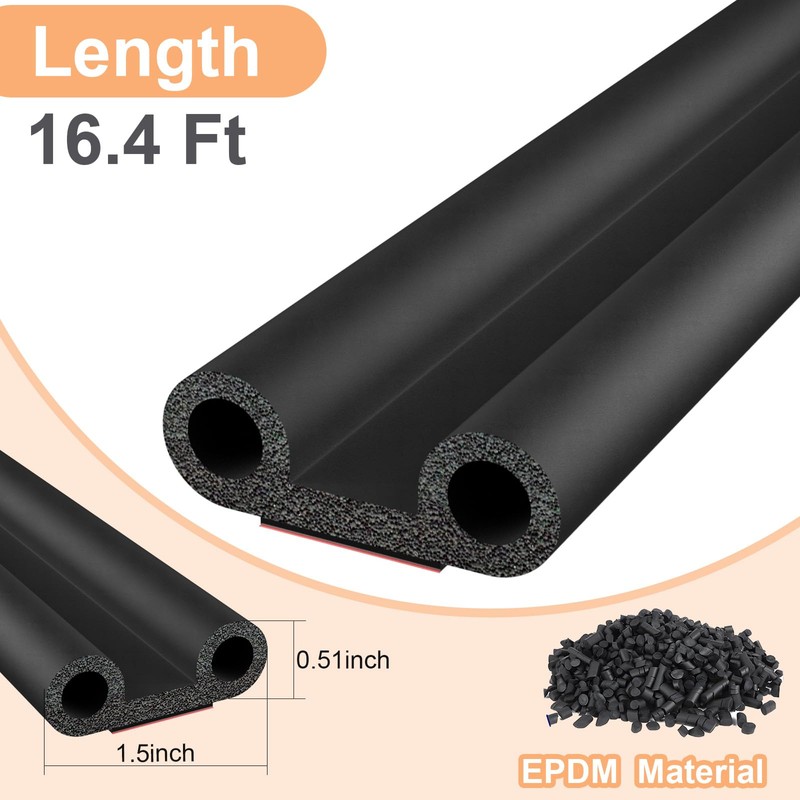 16.4FT Tailgate Seal, Adhesive Tonneau Cover Seal, Truck Bed Camper Shell Seal, Automotive Weather Stripping with Double Hole, Tailgate Seals for Pickups Trucks Campers Cars