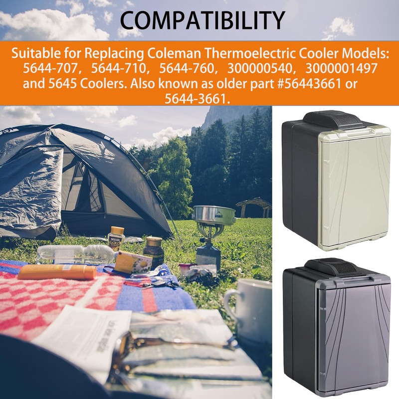 - 【 Wide Compatibility 】 Suitable for Replacing Coleman Thermoelectric Cooler Models: 5644-707,5644-710,5644-760,300000540,3000001497 and 5645 Coolers. Also known as older part #56443661 or 5644-3661 portable plug in cooler power cord.