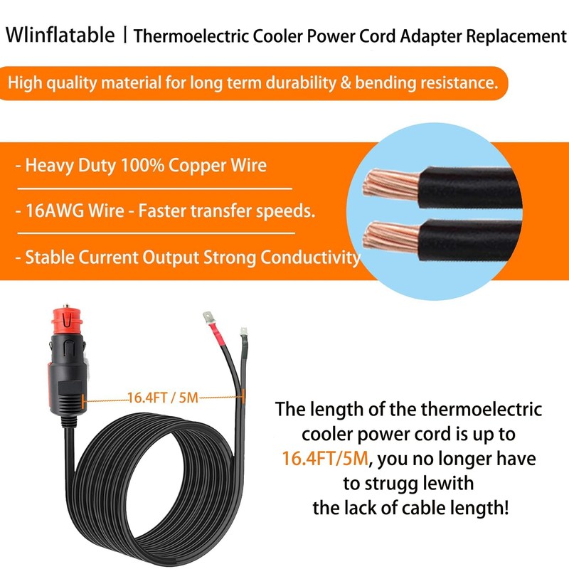 - 【Package Includes】With the purchase of this thermoelectric cooler power cord, you will receive1 * 16AWG 16.4FT thermoelectric cooler power cord and 2 * additional UL certified 15A Fuse. 100% customer satisfaction is our top purpose, we provide 24 * 7 friendly customer support and a 24 month product warranty. If you have any questions or doubts about our plug-in car thermoelectric cooler power cord, please feel free to contact us at any time!