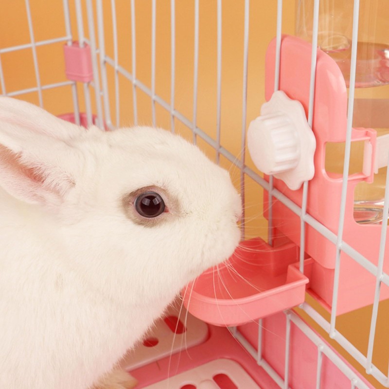 16.9oz Rabbit Water Bottle Hanging Automatic Water Dispenser for Cage Ferret Bunny Guinea Pig Water Bowl for Cages, Crates or Wall Mount (Cage Grid Spacing Over 0.59 inch) (Pink, Standard)