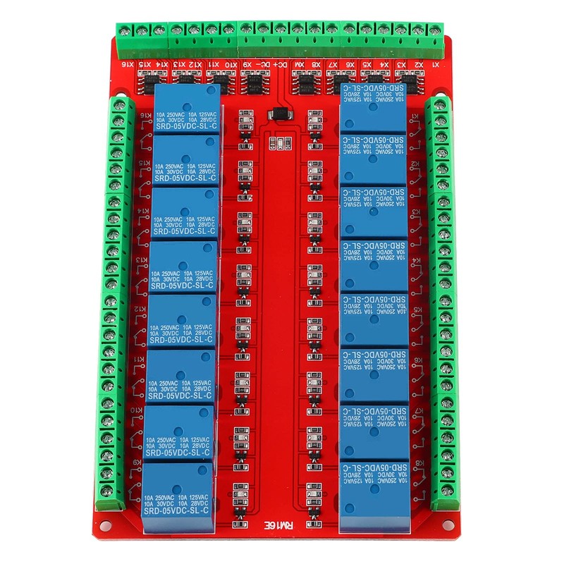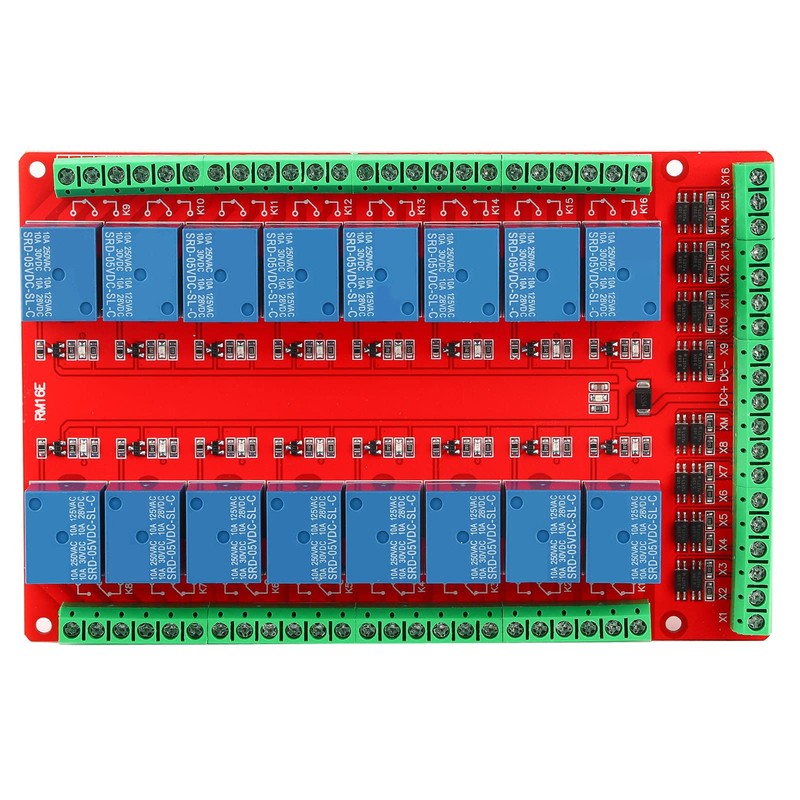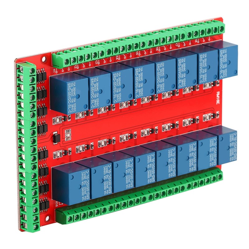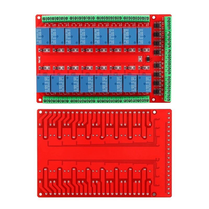 - The 16-channel isolation type relay module can select the triggering of high or low level signals and only needs 5mA current to control the relay with 10A control capacity.